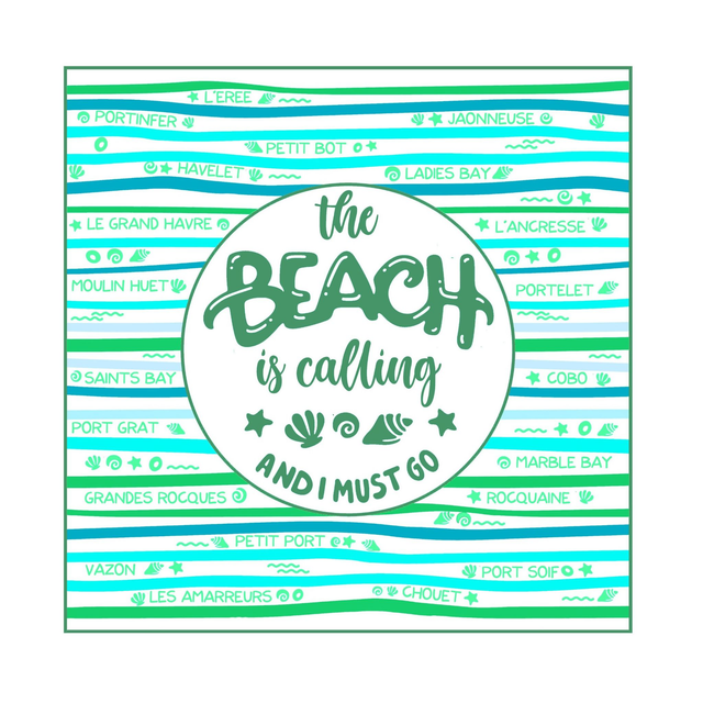 40cm x 40cm bag 100% cotton white shopper bag with blue/green mix Beach is Calling design on both sides