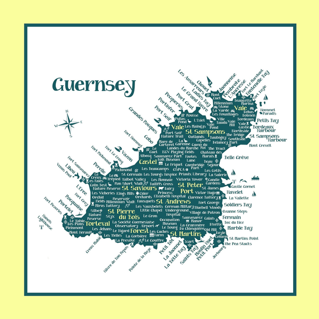 40cm x 40cm bag 100% cotton lemon yellow shopper bag with Guernsey Map Green design on both sides
